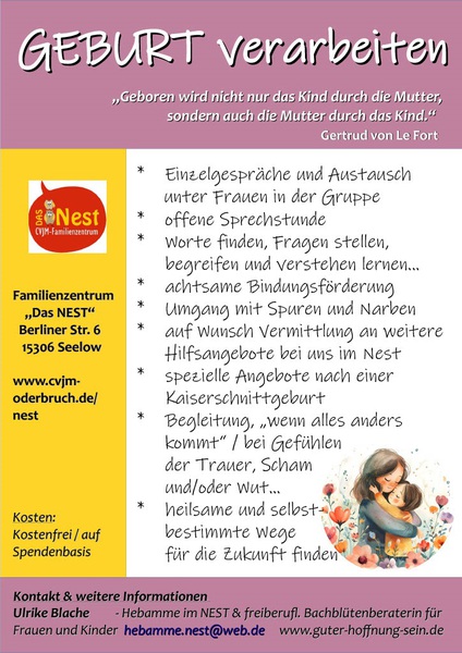 Während dieser Zeit biete ich auch immer wieder THEMENKREISE zu bestimmten Themen rund um Gesundheit, Natur, Weiblichkeit und das Leben mit Kindern an. Wenn du darüber informiert werden möchtest, schreib mir gerne eine Nachricht oder lass dich in die Nest-WhatsApp-Gruppe einfügen.